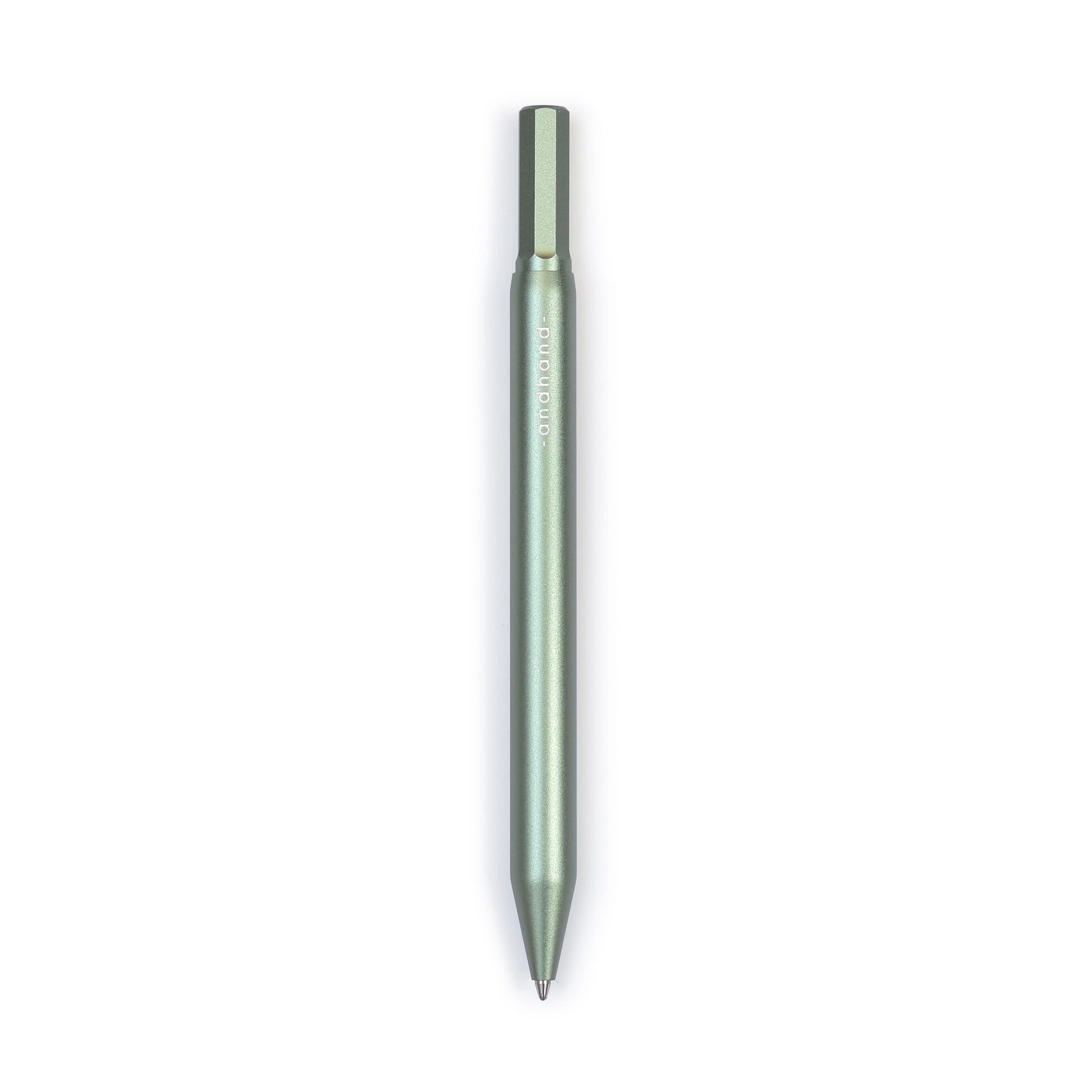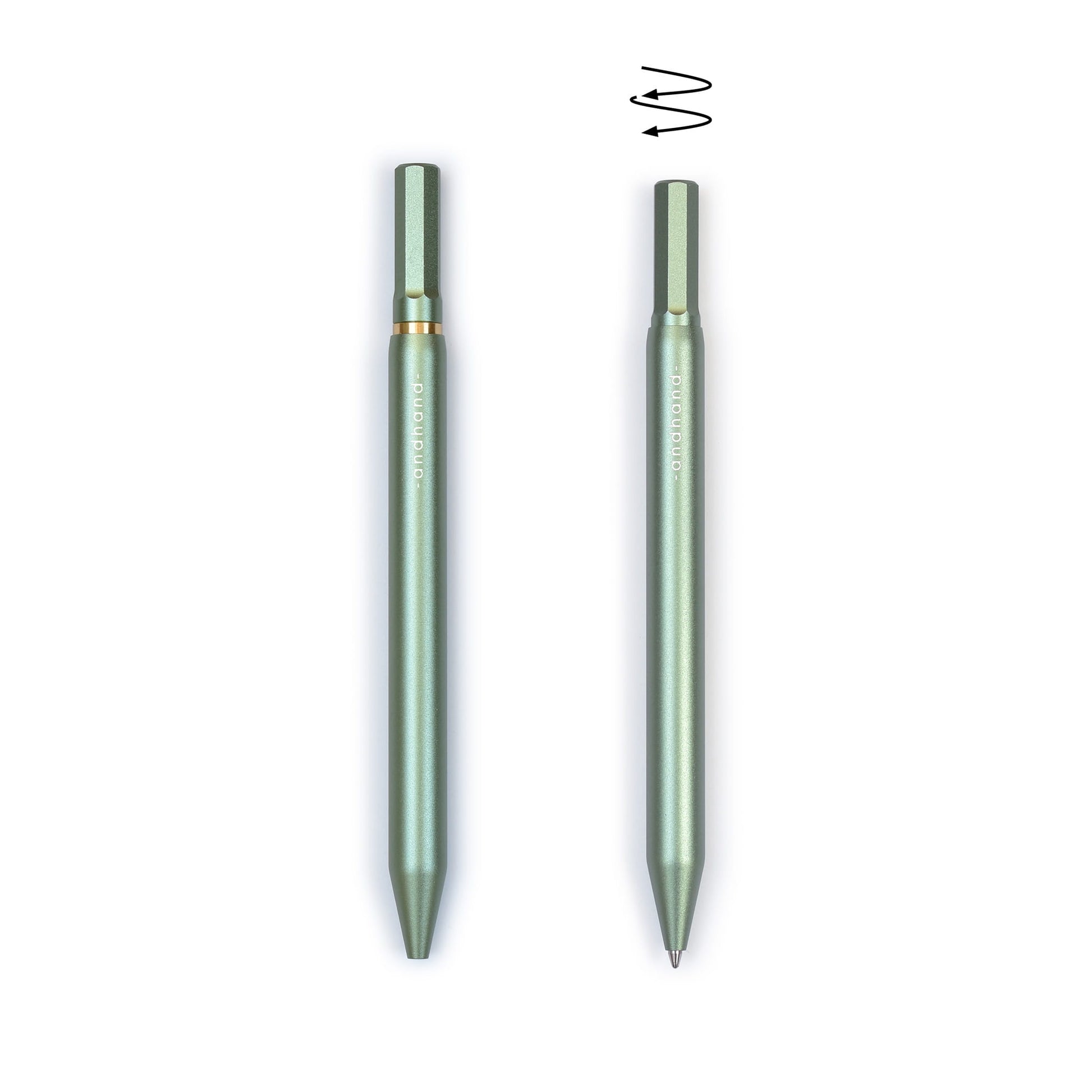• 100% machined metal ballpoint green pen / Anodized aluminium and brass.