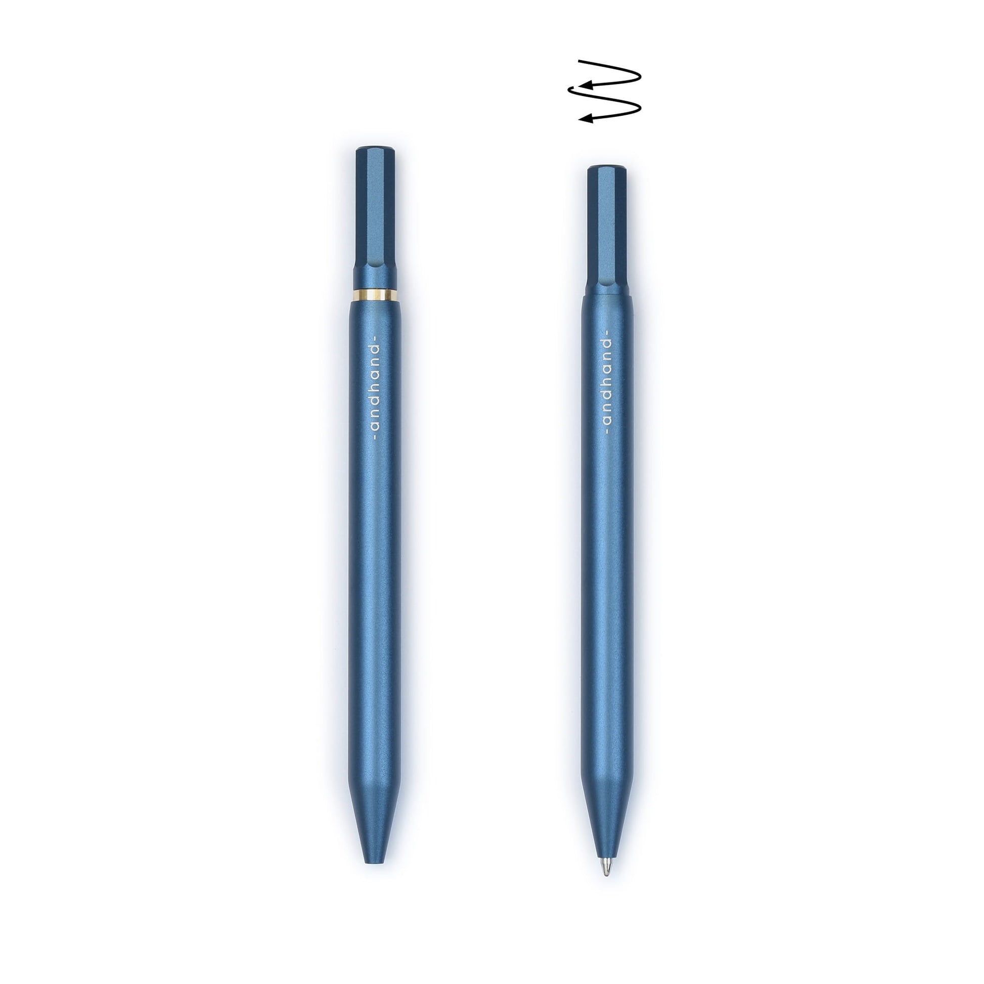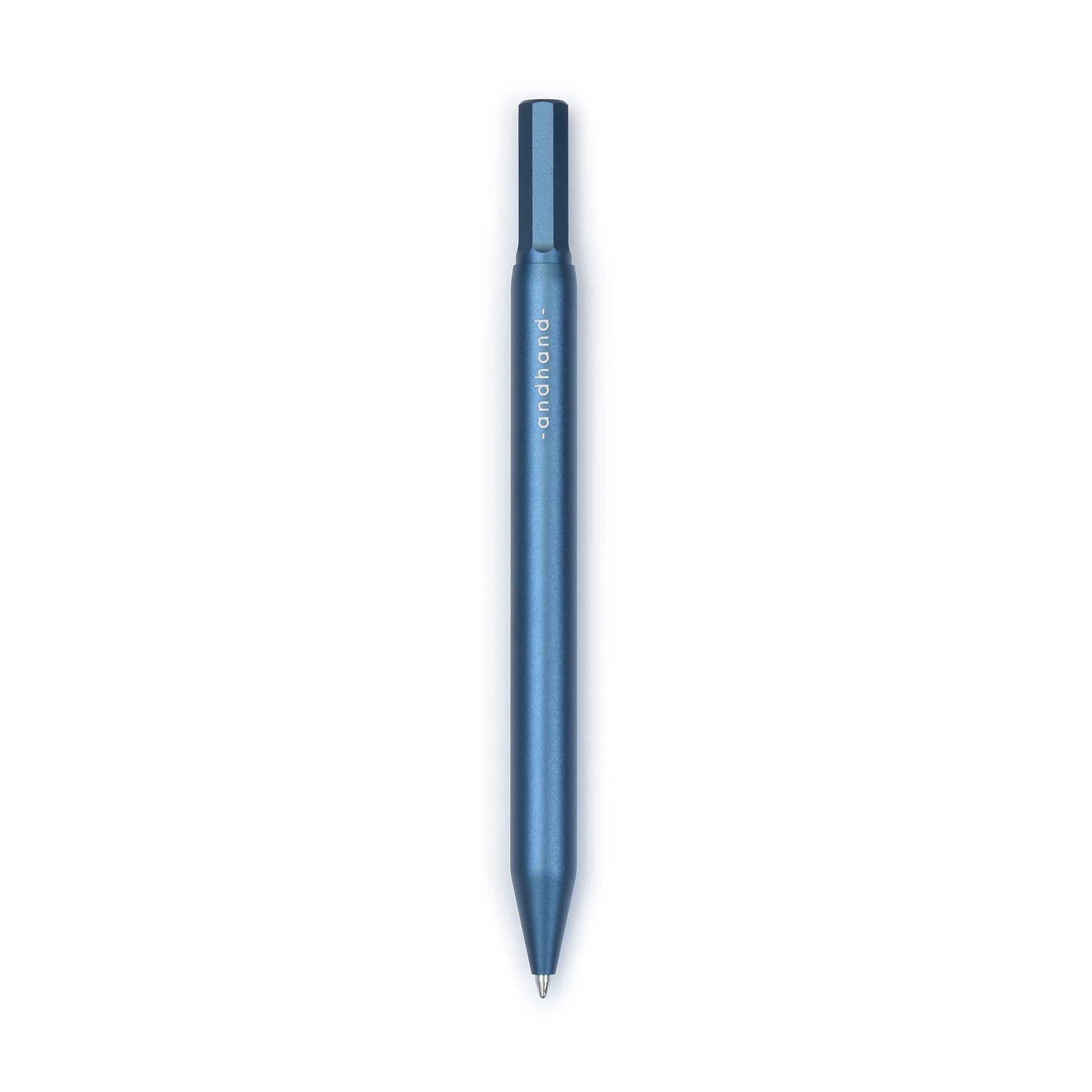 • 100% machined metal ballpoint blue pen / Anodized aluminium and brass.